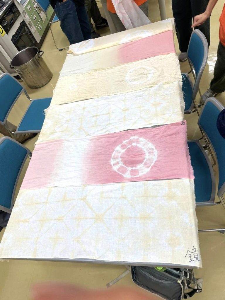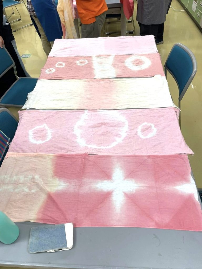 日本茜の絞り染めも体験していただきました。上手に仕上がっていますね。