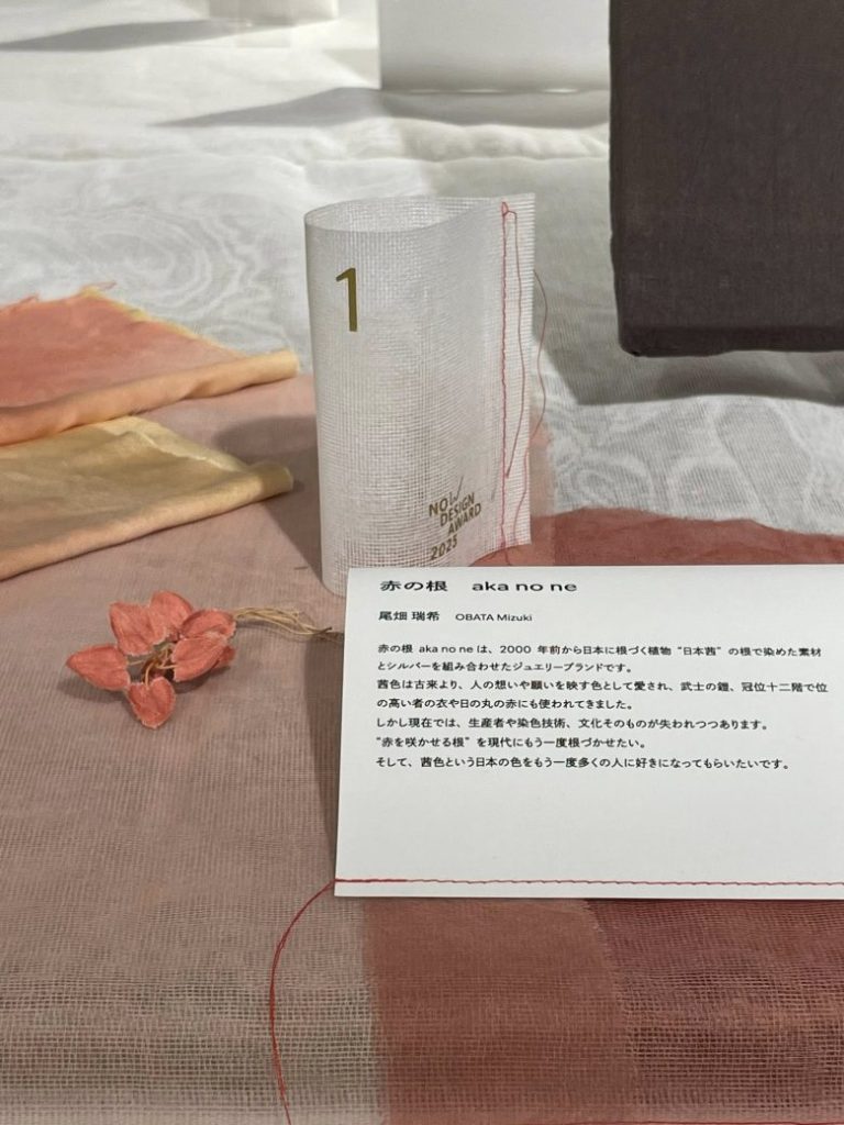 2025年11月3日Tweet その他芸大生×日本茜のコラボレーション【産学連携】京都芸術大学3回生の尾畑瑞希さんが、学園祭で日本茜とのコラボレーション作品を披露されました。日本茜の葉をモチーフにした独創的なアクセサリーですね。ブランド名は「赤の根 aka no ne」です。日本茜への想いが詰まったタペストリーや栞などもとっても素敵ですね。持ち前のデザイン力で日本茜にも一層の磨きがかかります。作品も拡がり、ますますご活躍されることを願っています。